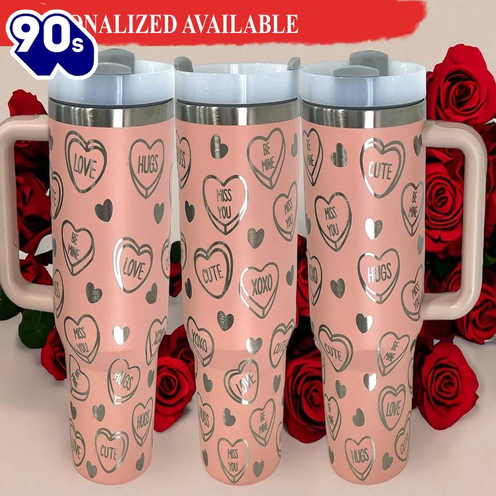 40 oz Valentines Candy Hearts Tumbler with Handle – Laser engraved tumbler with lid and straw – 40oz Tumbler with Handle