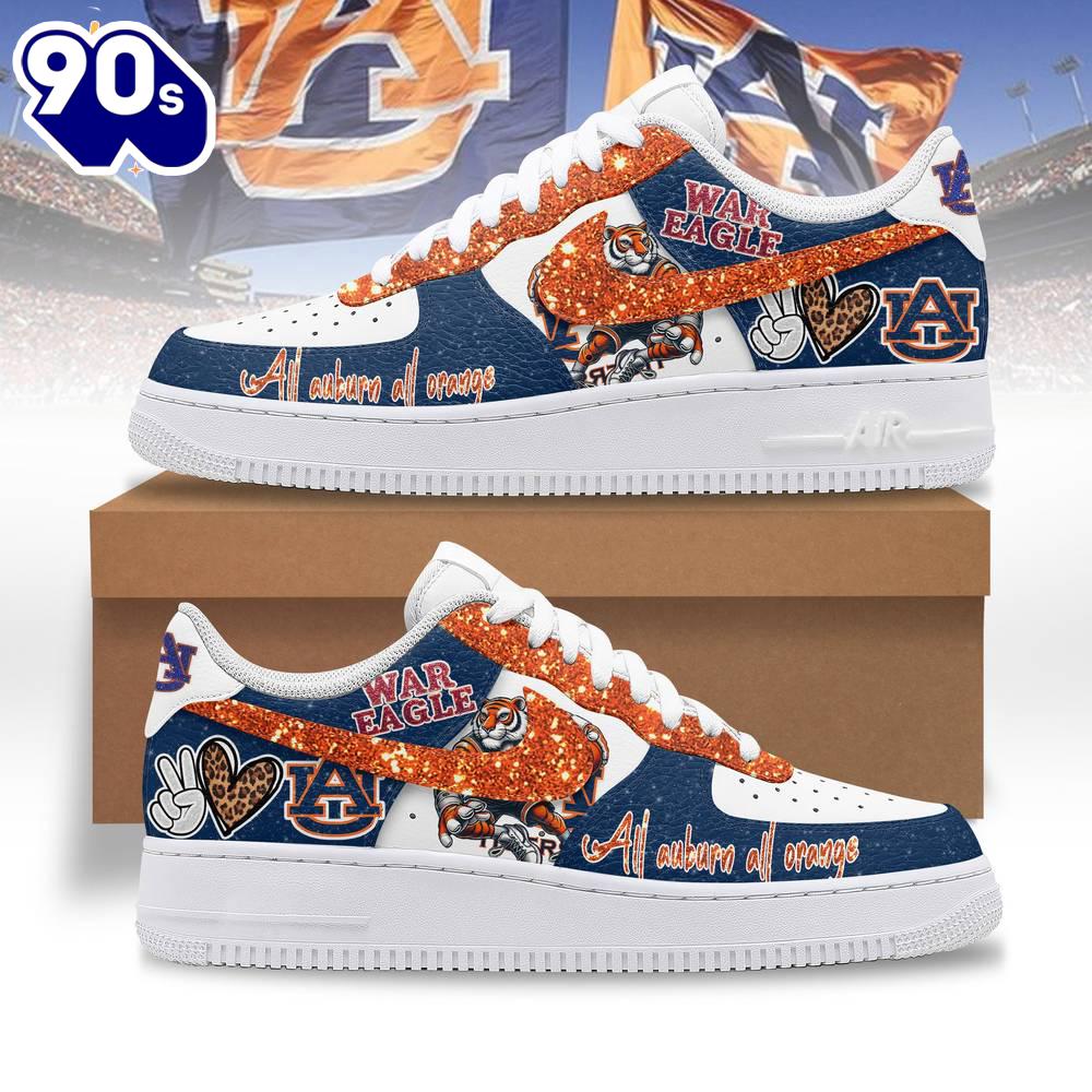 Auburn Tigers AF1 Sneakers Shoes For Men And Women Air Force 1 shoes are iconic sneakers that blend basketball heritage with streetwear style. Named after the aircraft that carries the President of the United States, these shoes feature a classic silhouette with a padded collar for comfort and a durable leather upper. The Air cushioning technology in the sole provides exceptional support, making them not only stylish but also practical for everyday wear. Over the years, Air Force 1s have transcended their athletic origins, becoming a cultural symbol in music, fashion, and art, often customized in various colors and designs to reflect individual style. Their timeless appeal and versatility ensure they remain a staple in sneaker culture.