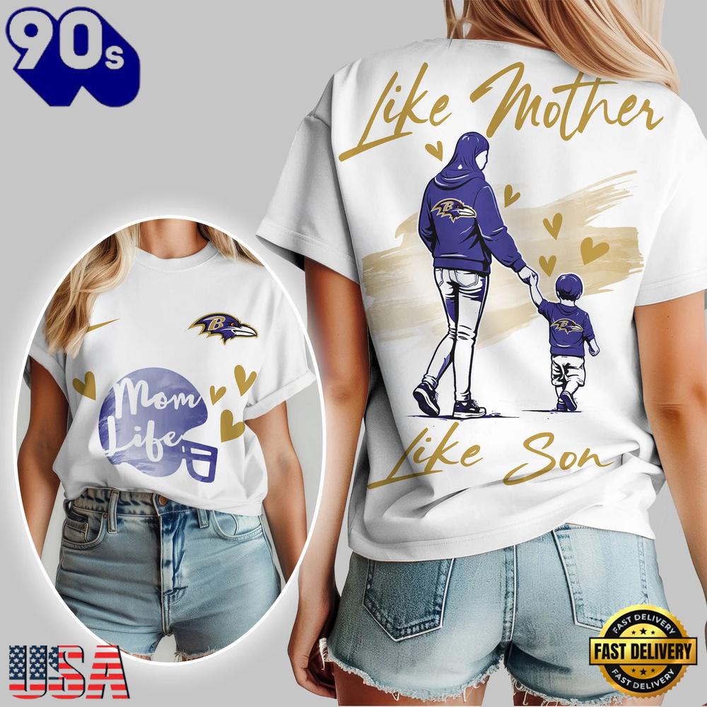 Baltimore Ravens Premium NFL Like Mother Like Son 3D Shirt The 3D Shirt is a fashion statement that goes beyond the ordinary. Using advanced printing technology, it brings designs to life with depth and vividness. Crafted from high-quality materials, it offers comfort and durability. The three-dimensional graphics create a captivating effect that’s perfect for casual wear or making a bold statement. Whether you’re expressing your fandom or showcasing your unique taste, the 3D Shirt is a wearable work of art that sets you apart from the crowd.