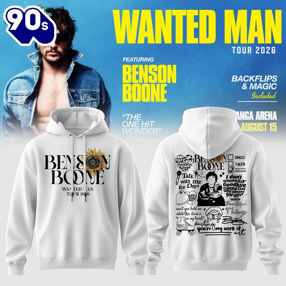 Benson Boone Wanted Man Tour 2026 Black Hoodie 3D The 3D Shirt is a fashion statement that goes beyond the ordinary. Using advanced printing technology, it brings designs to life with depth and vividness. Crafted from high-quality materials, it offers comfort and durability. The three-dimensional graphics create a captivating effect that’s perfect for casual wear or making a bold statement. Whether you’re expressing your fandom or showcasing your unique taste, the 3D Shirt is a wearable work of art that sets you apart from the crowd.