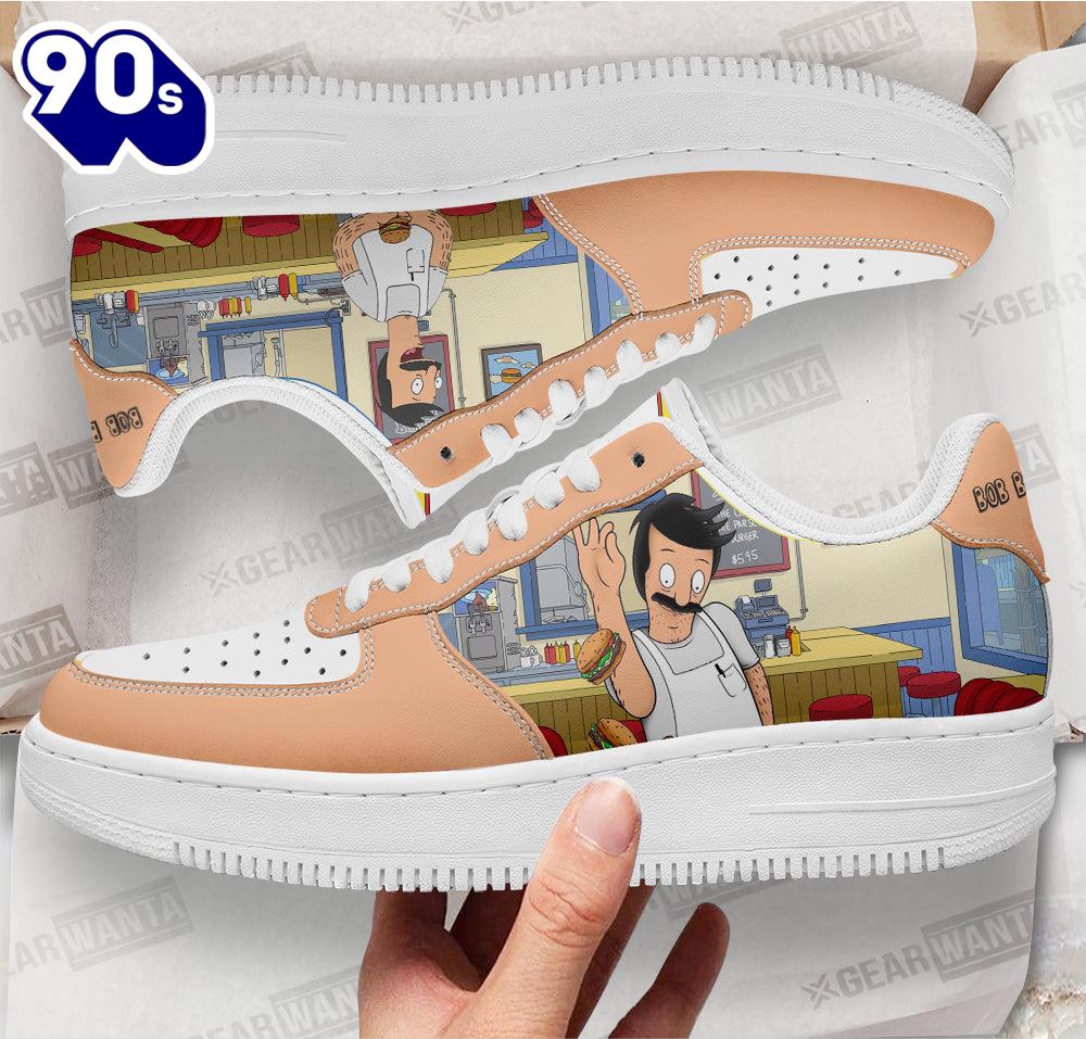 Bob Belcher Bob’s Burger Custom Air Sneakers Air Force 1 shoes are iconic sneakers that blend basketball heritage with streetwear style. Named after the aircraft that carries the President of the United States, these shoes feature a classic silhouette with a padded collar for comfort and a durable leather upper. The Air cushioning technology in the sole provides exceptional support, making them not only stylish but also practical for everyday wear. Over the years, Air Force 1s have transcended their athletic origins, becoming a cultural symbol in music, fashion, and art, often customized in various colors and designs to reflect individual style. Their timeless appeal and versatility ensure they remain a staple in sneaker culture.