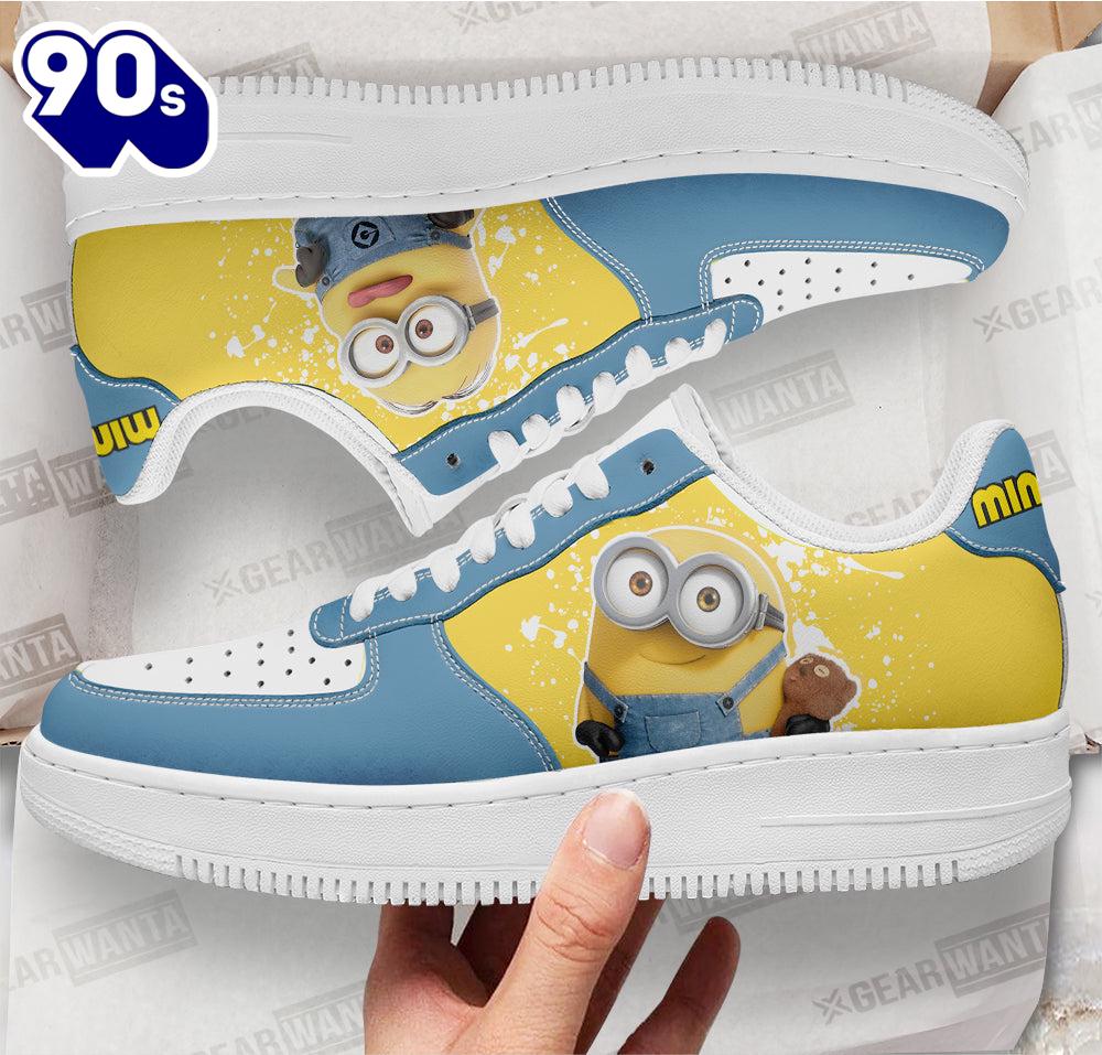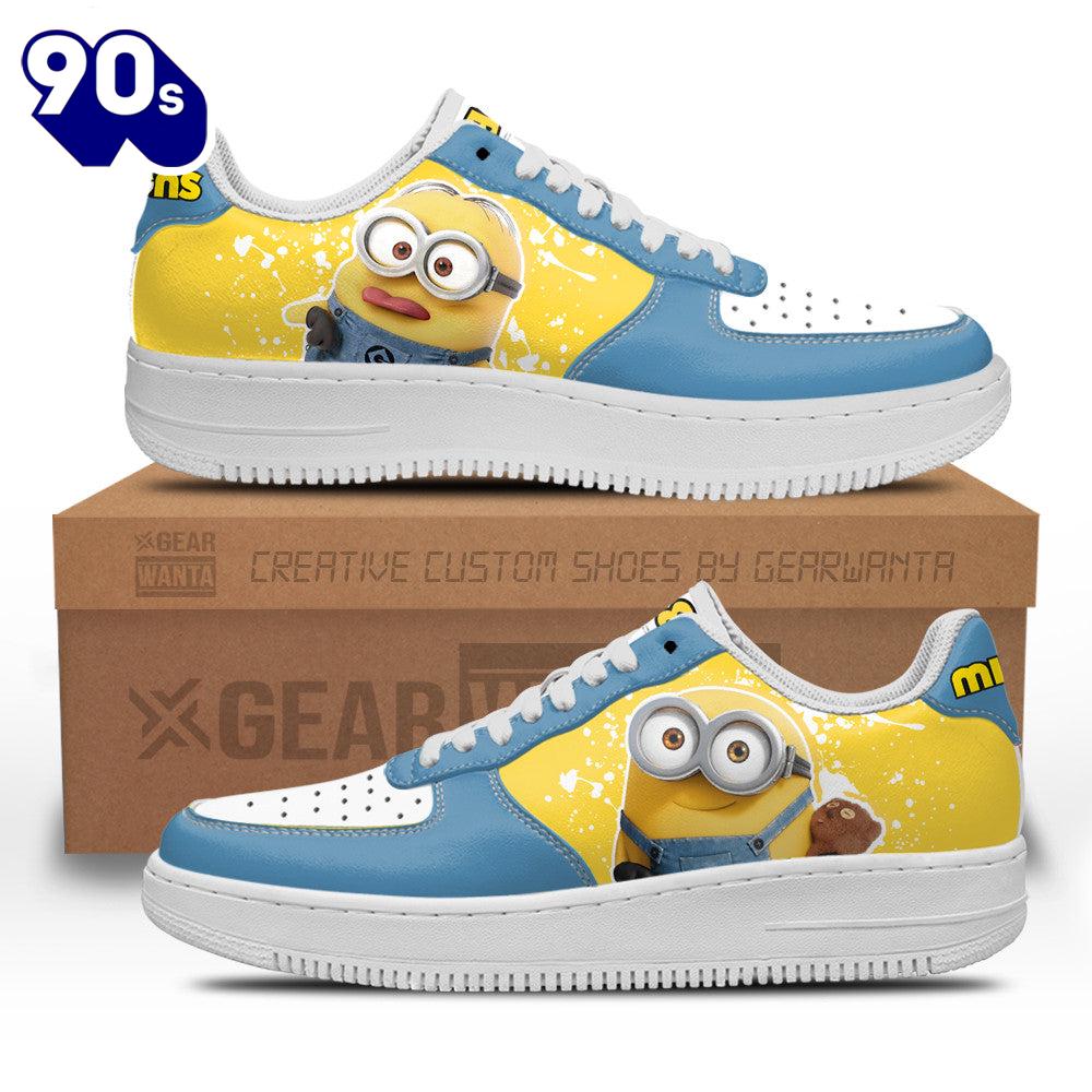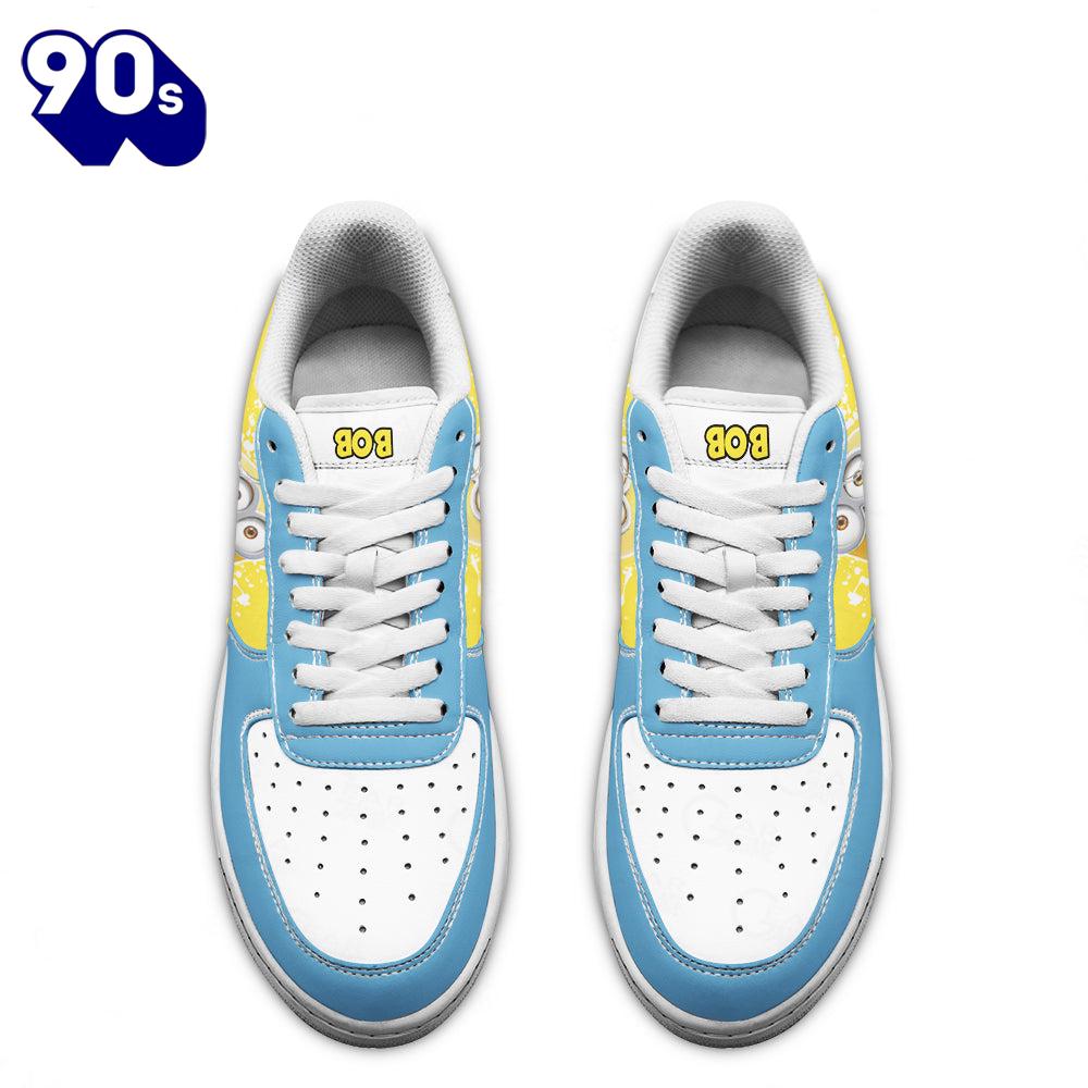 Bob Minion Custom Air Sneakers Air Force 1 shoes are iconic sneakers that blend basketball heritage with streetwear style. Named after the aircraft that carries the President of the United States, these shoes feature a classic silhouette with a padded collar for comfort and a durable leather upper. The Air cushioning technology in the sole provides exceptional support, making them not only stylish but also practical for everyday wear. Over the years, Air Force 1s have transcended their athletic origins, becoming a cultural symbol in music, fashion, and art, often customized in various colors and designs to reflect individual style. Their timeless appeal and versatility ensure they remain a staple in sneaker culture.
