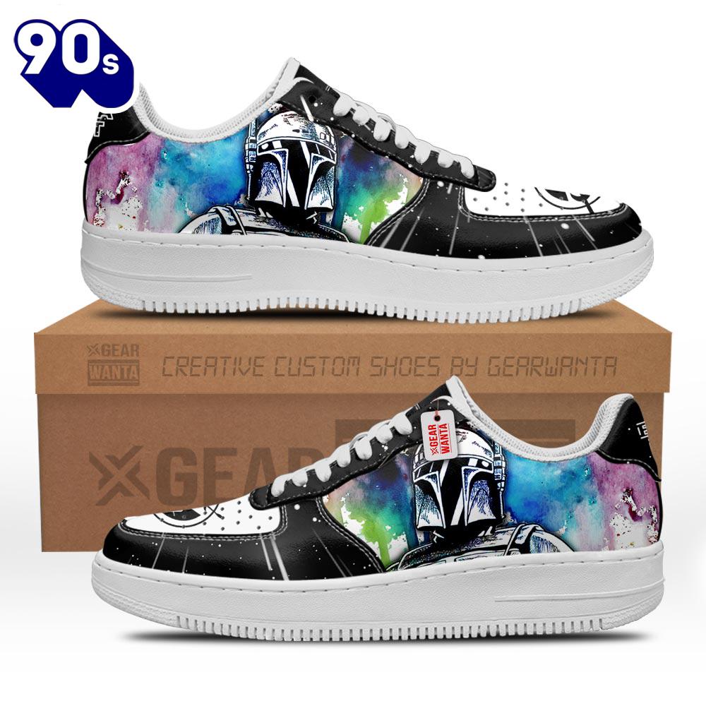 Boba Fett Star Wars Custom Air Sneakers v1 Air Force 1 shoes are iconic sneakers that blend basketball heritage with streetwear style. Named after the aircraft that carries the President of the United States, these shoes feature a classic silhouette with a padded collar for comfort and a durable leather upper. The Air cushioning technology in the sole provides exceptional support, making them not only stylish but also practical for everyday wear. Over the years, Air Force 1s have transcended their athletic origins, becoming a cultural symbol in music, fashion, and art, often customized in various colors and designs to reflect individual style. Their timeless appeal and versatility ensure they remain a staple in sneaker culture.