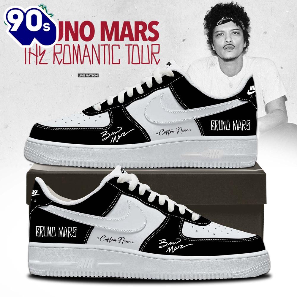 Bruno Mars “The Romantic “ Shoes 2 Air Force 1 shoes are iconic sneakers that blend basketball heritage with streetwear style. Named after the aircraft that carries the President of the United States, these shoes feature a classic silhouette with a padded collar for comfort and a durable leather upper. The Air cushioning technology in the sole provides exceptional support, making them not only stylish but also practical for everyday wear. Over the years, Air Force 1s have transcended their athletic origins, becoming a cultural symbol in music, fashion, and art, often customized in various colors and designs to reflect individual style. Their timeless appeal and versatility ensure they remain a staple in sneaker culture.