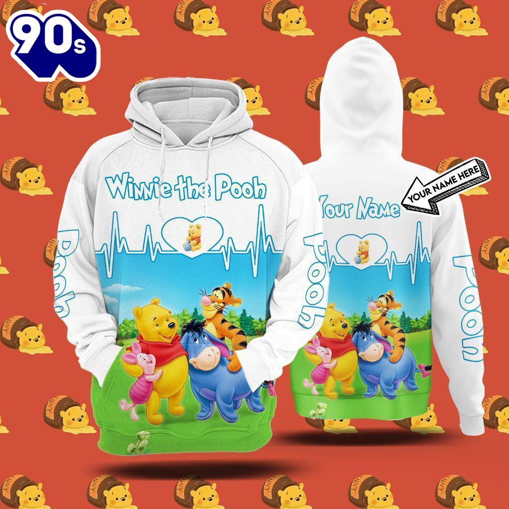 Cartoon Character Personalized Custom Name Friend Winnie The Pooh Hoodie All Over Printed 3D Unisex Men Women
