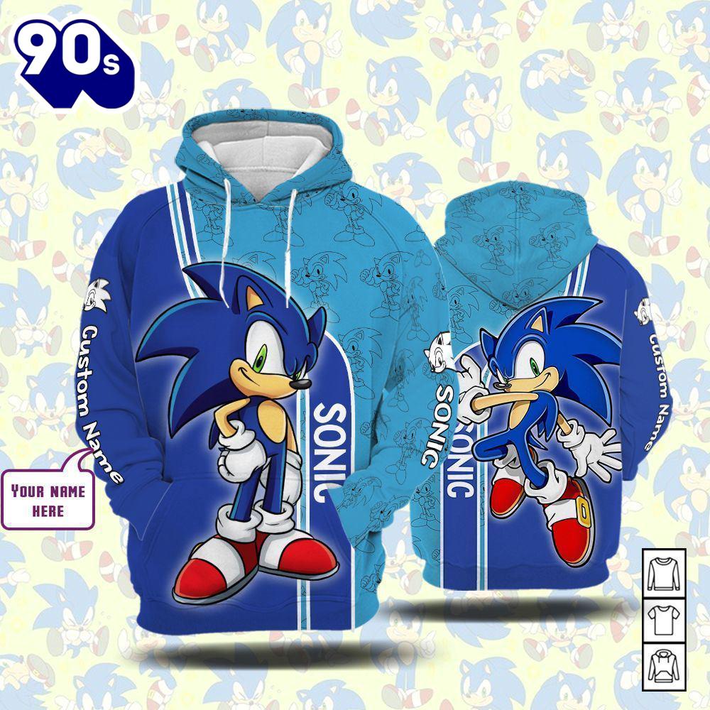 Product details: Cartoon Character Sonic Form Hoodie All Over Printed 3D Personalized Custom Name Unisex Men Women