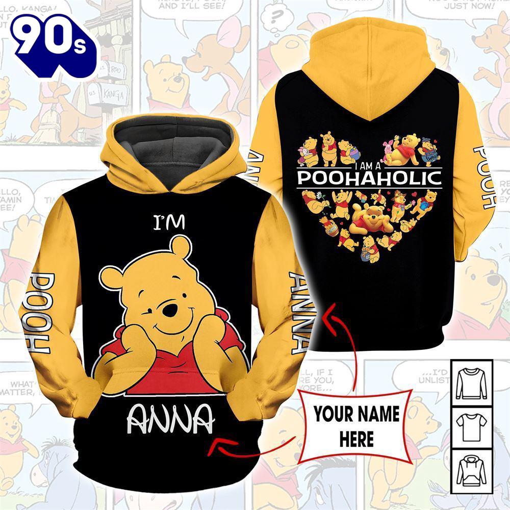 Photos Of Cartoon Character Winnie The Pooh Aholic Hoodie All Over Printed 3D Personalized Custom Name Unisex Men Women