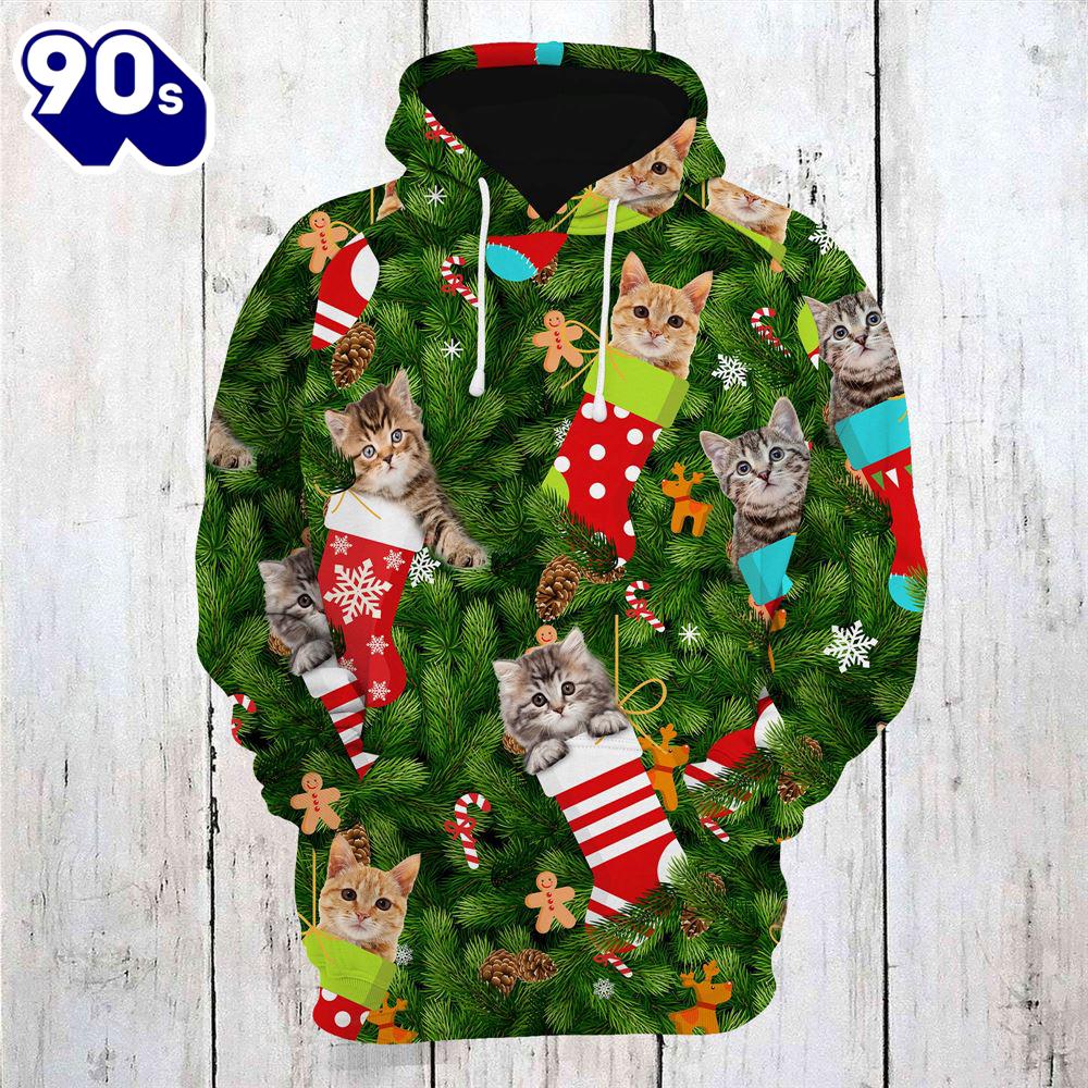 Cat Socks Christmas Hoodie All Over Print , Pet Christmas 3d Shirt