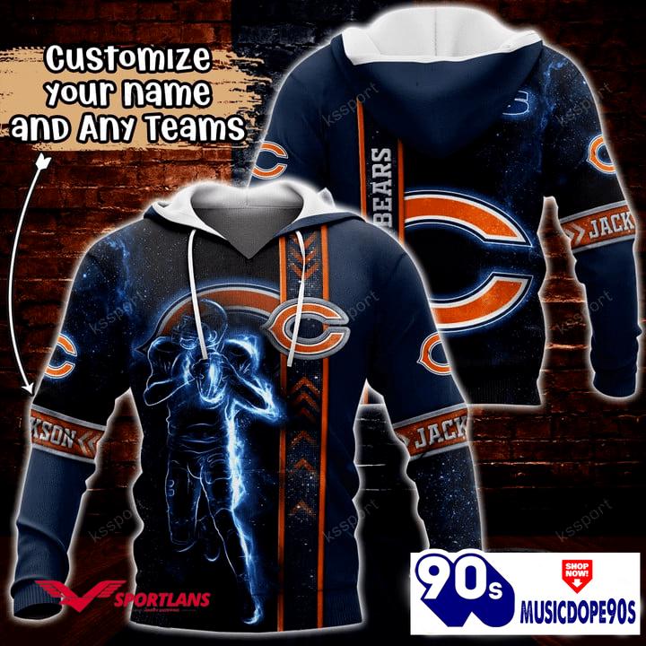 Product details: Chicago Bears NFL Custom Name 3D Hoodie Teams Shirt For Fans