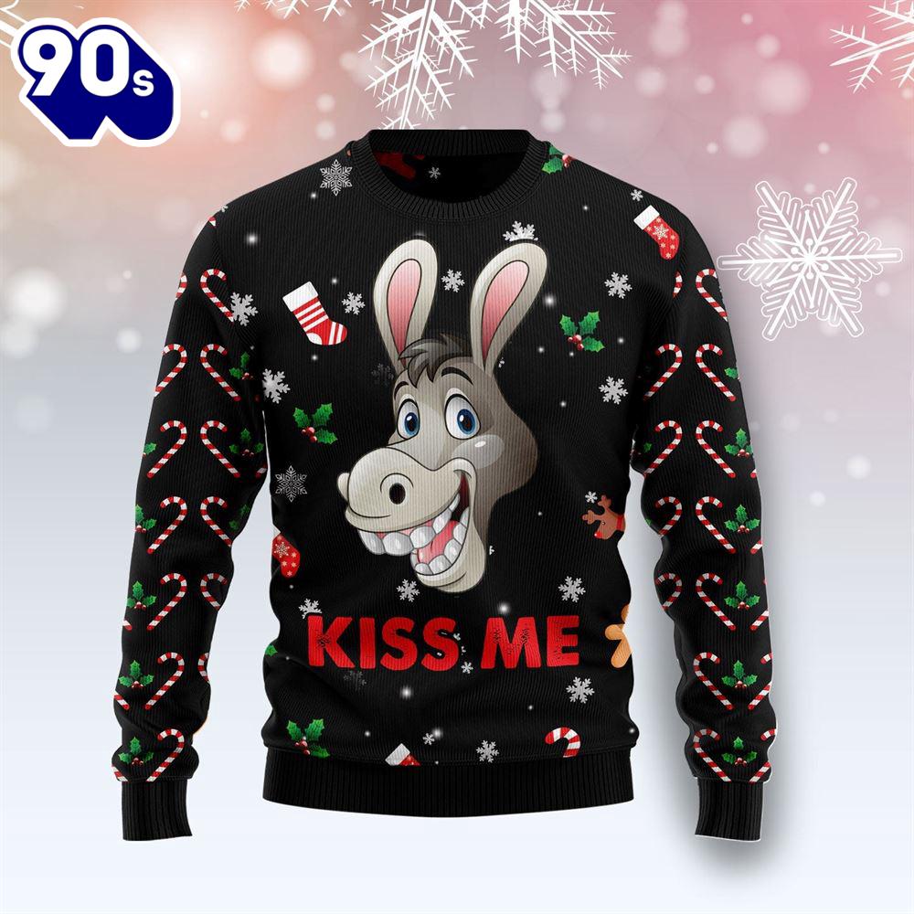 Christmas 2024 Donkey Kissme Ugly Christmas Sweater