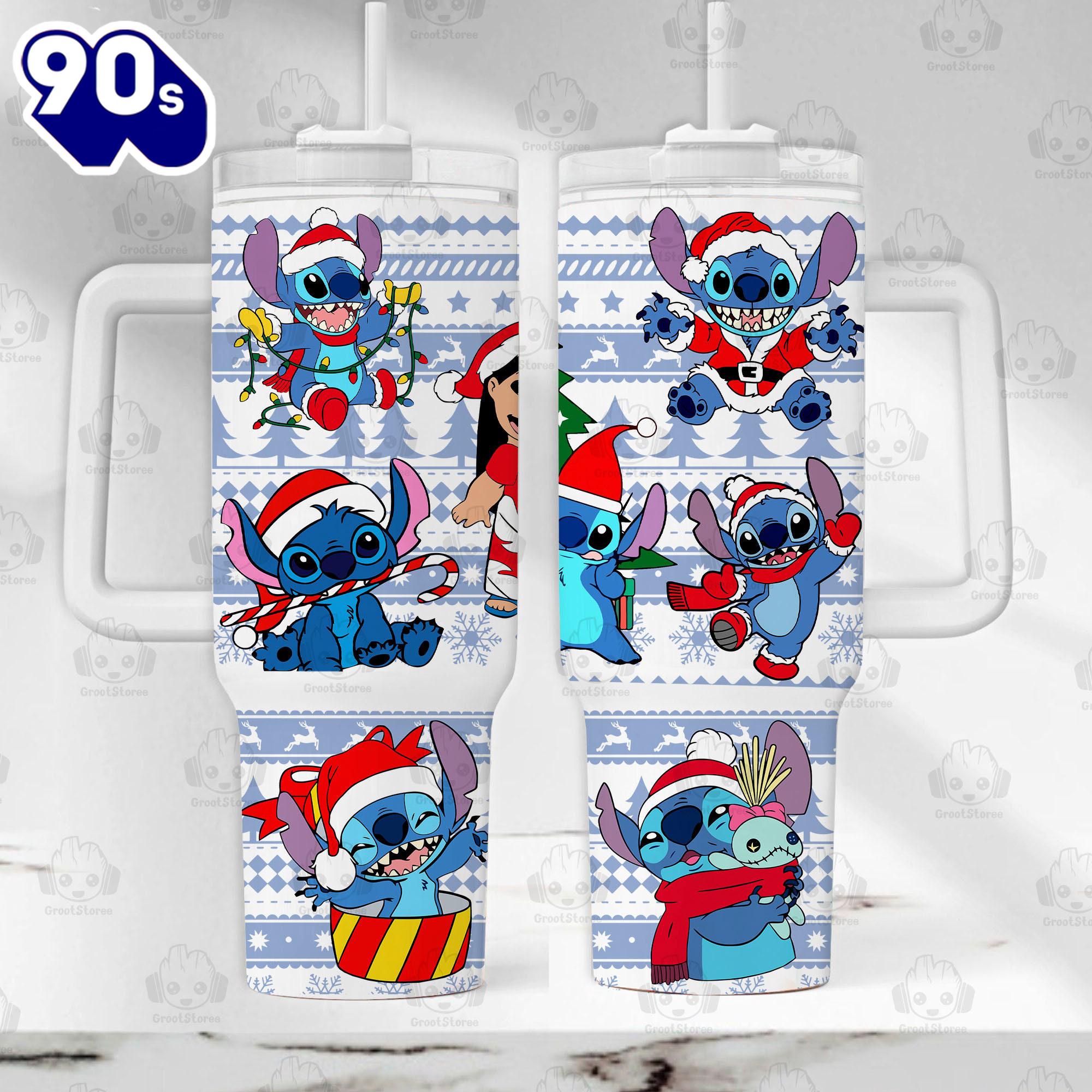 Photos Of Christmas Lilo And Stitch Disney Cartoon Custom Stanley Quencher 40oz Stainless Steel Tumbler With Handle