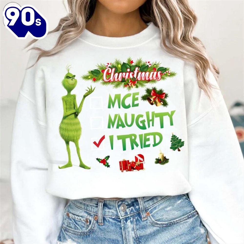 Product details: Christmas Nice Naughty, I tried Shirt, Grinch Shirt, Christmas Shirt Gift Xmas