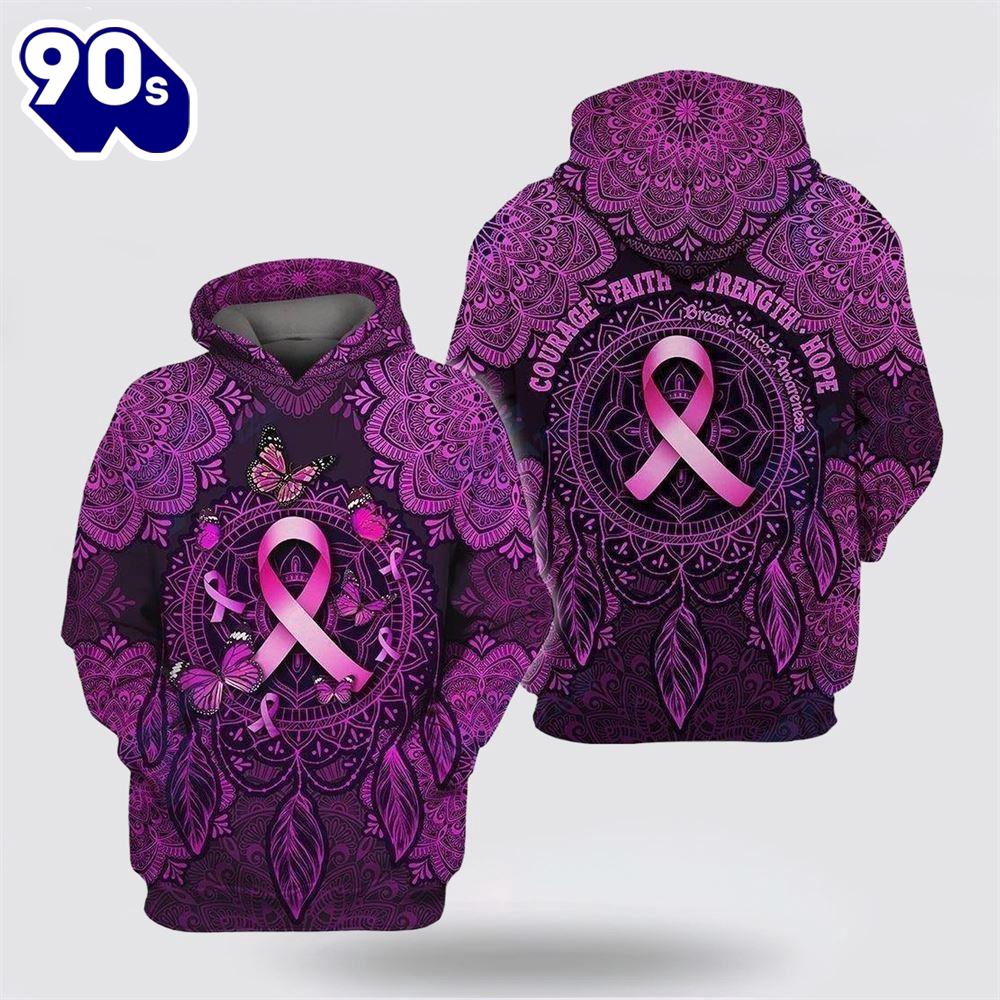 Courage Faith Strength Hope Breast Cancer Awareness Mandala Pink Hoodie