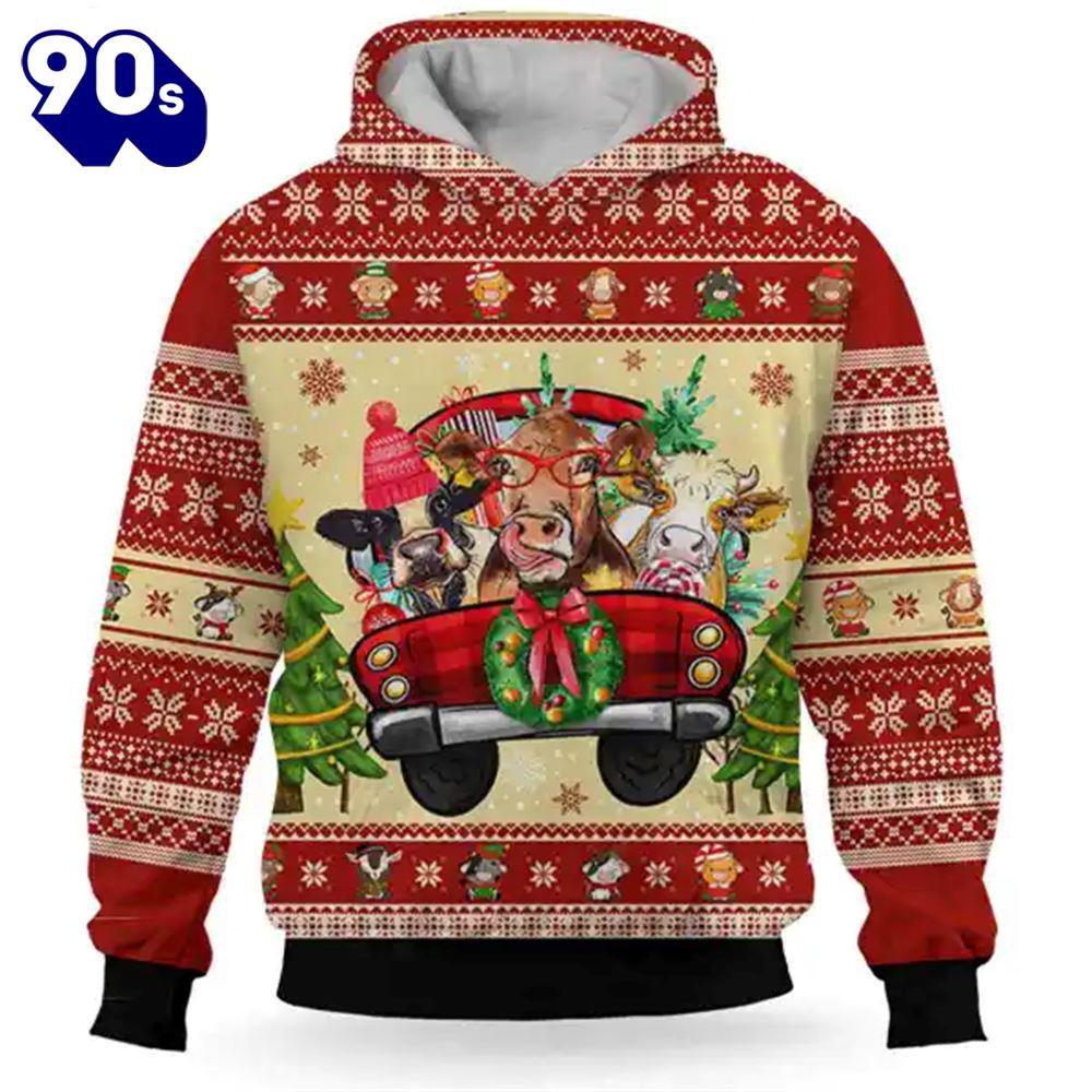 Product details: Cow Christmas Funny Farm Truck Red Christmas Hoodie All Over Print , Pet Christmas 3d Shirt