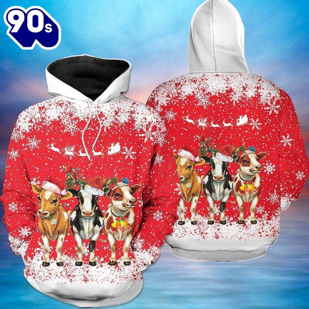 Cows Christmas Hoodie All Over Print , Pet Christmas 3d Shirt