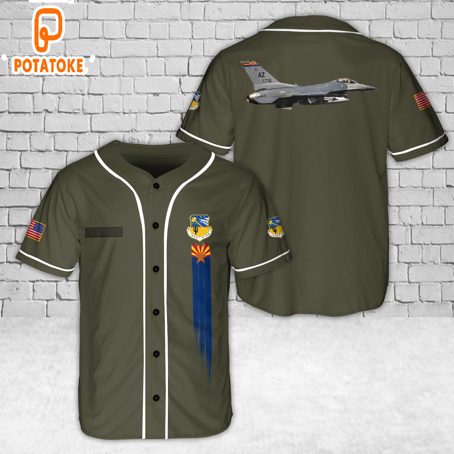 Photos Of Custom Name Arizona Air National Guard 162nd Wing F-16 Fighting Falcon Baseball Jersey 4th Of July