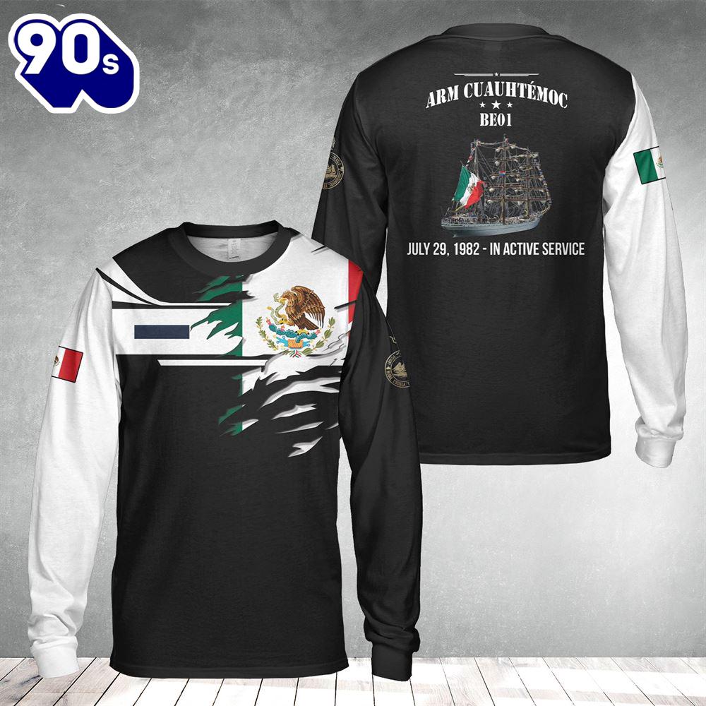 Custom Name Mexican Navy ARM Cuauht?moc (BE01) Long Sleeve Shirt The 3D Shirt is a fashion statement that goes beyond the ordinary. Using advanced printing technology, it brings designs to life with depth and vividness. Crafted from high-quality materials, it offers comfort and durability. The three-dimensional graphics create a captivating effect that’s perfect for casual wear or making a bold statement. Whether you’re expressing your fandom or showcasing your unique taste, the 3D Shirt is a wearable work of art that sets you apart from the crowd.