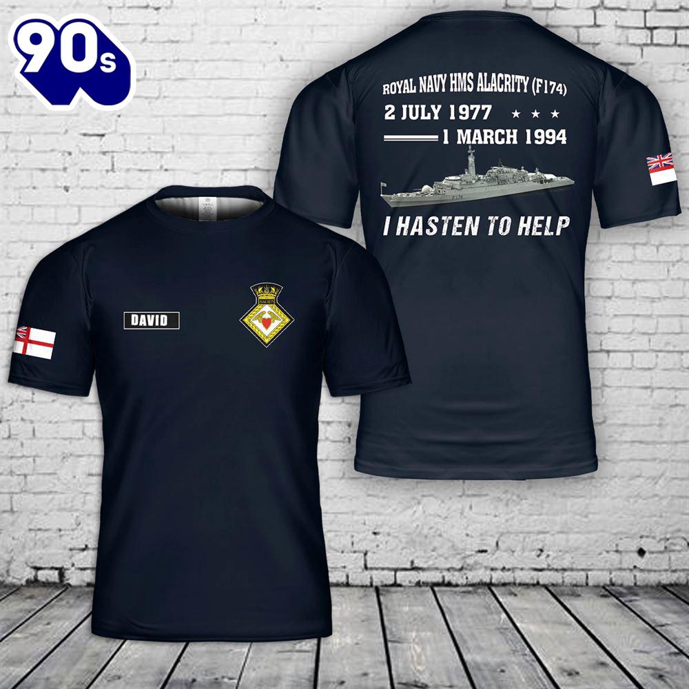 Custom Name Royal Navy HMS Alacrity (F174) 3D T-Shirt