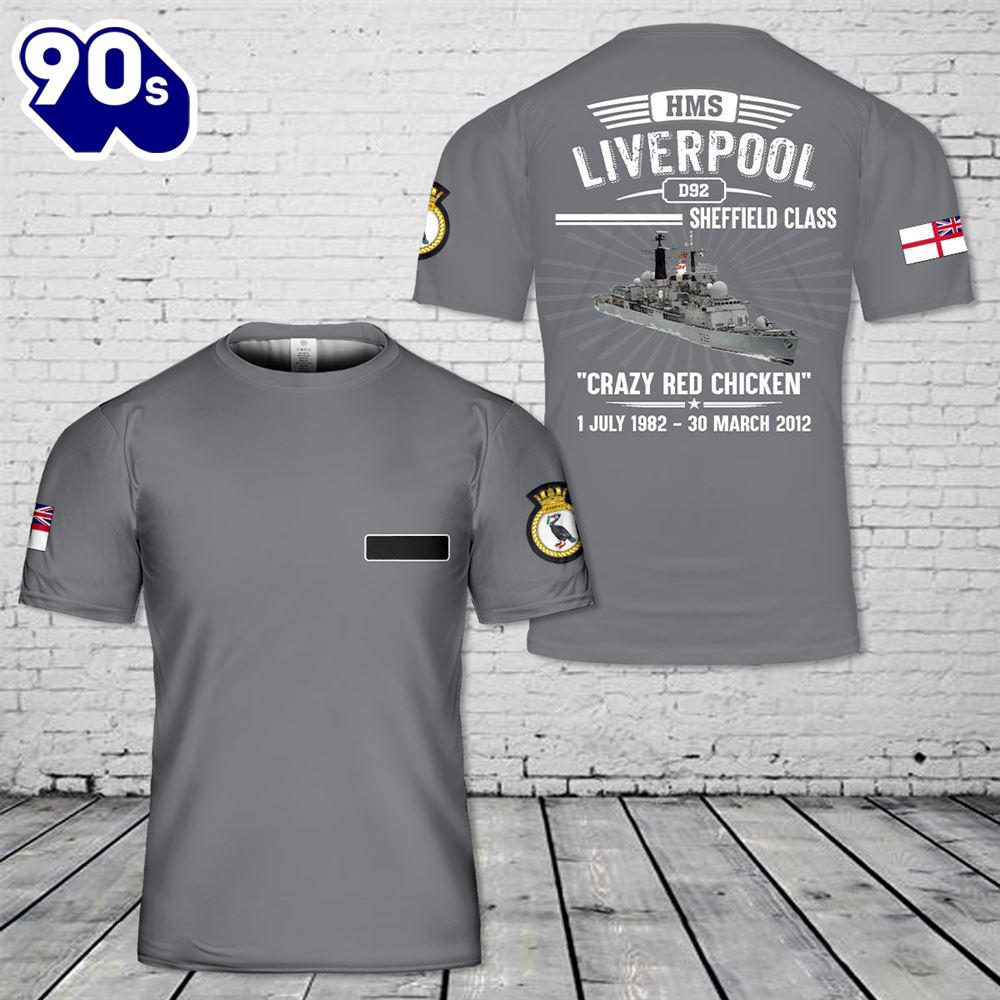 Product details: Custom Name Royal Navy HMS Liverpool (D92) T-Shirt 3D