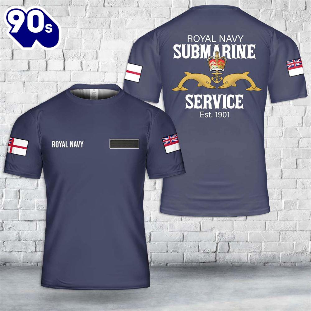 Custom Name Royal Navy Submarine Service T-Shirt 3D 1 The 3D Shirt is a fashion statement that goes beyond the ordinary. Using advanced printing technology, it brings designs to life with depth and vividness. Crafted from high-quality materials, it offers comfort and durability. The three-dimensional graphics create a captivating effect that’s perfect for casual wear or making a bold statement. Whether you’re expressing your fandom or showcasing your unique taste, the 3D Shirt is a wearable work of art that sets you apart from the crowd.