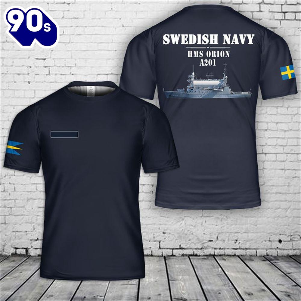 Product details: Custom Name Swedish Navy HMS Orion (A201) 3D T-Shirt