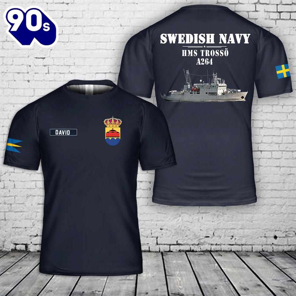 Product details: Custom Name Swedish Navy HMS Trosso (A264) 3D T-shirt