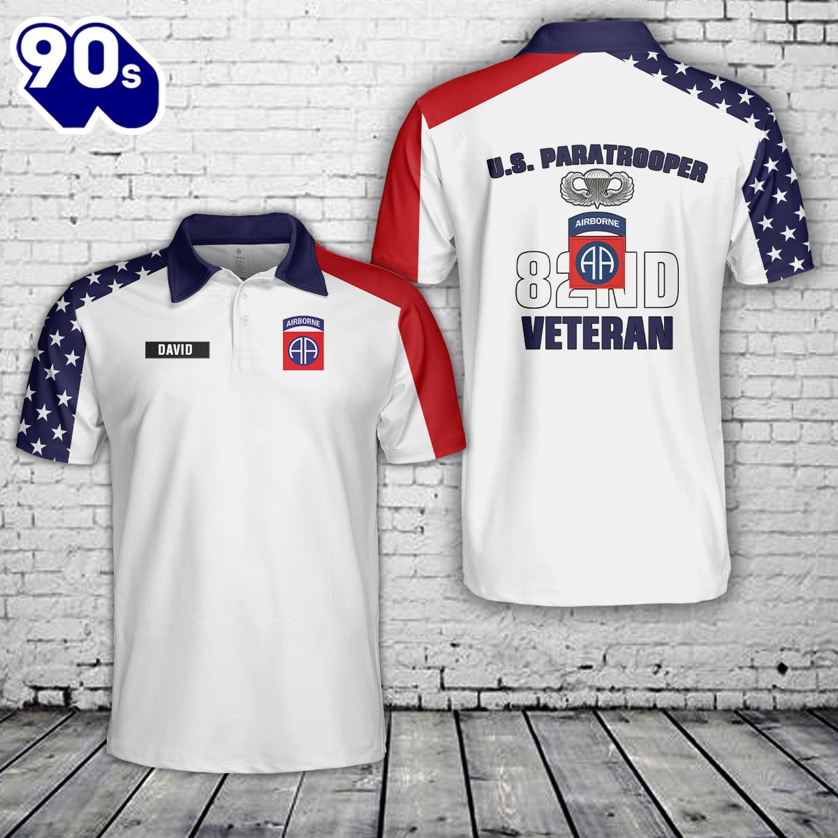 Product details: Custom Name US Army Veteran 82nd Airborne Division Paratrooper, 4th Of July Polo Shirt Gift Summer