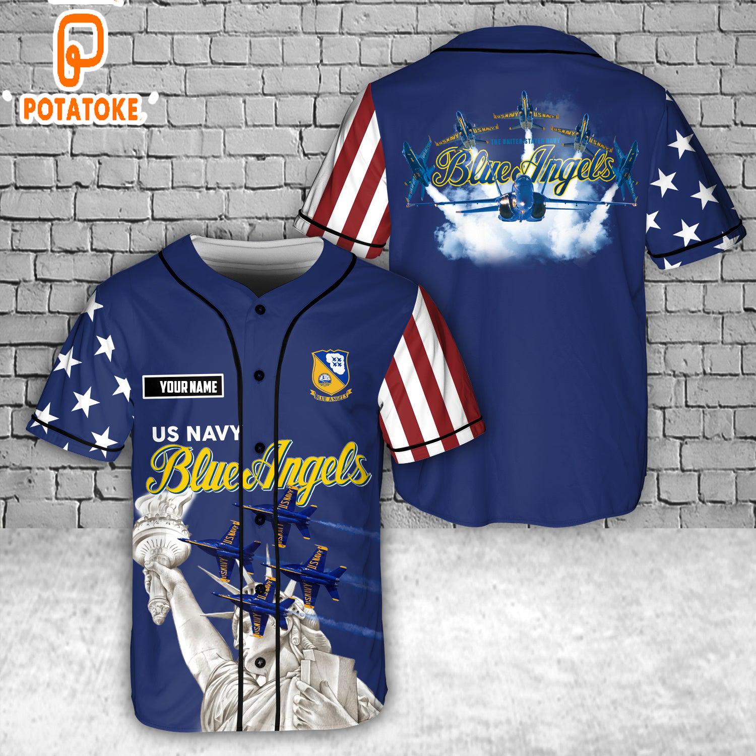 Custom Name US Navy Blue Angels, 4th Of July Baseball Jersey 4th Of July Baseball jersey the epitome of sporty style and unparalleled comfort. Designed for athletes and fans alike, this jersey combines top-notch craftsmanship with superior materials. Made from high-quality, breathable fabric, it ensures maximum breathability during intense gameplay. With its perfect fit and reinforced stitching, this baseball jersey offers exceptional durability, withstanding the demands of rigorous training sessions and competitive matches.