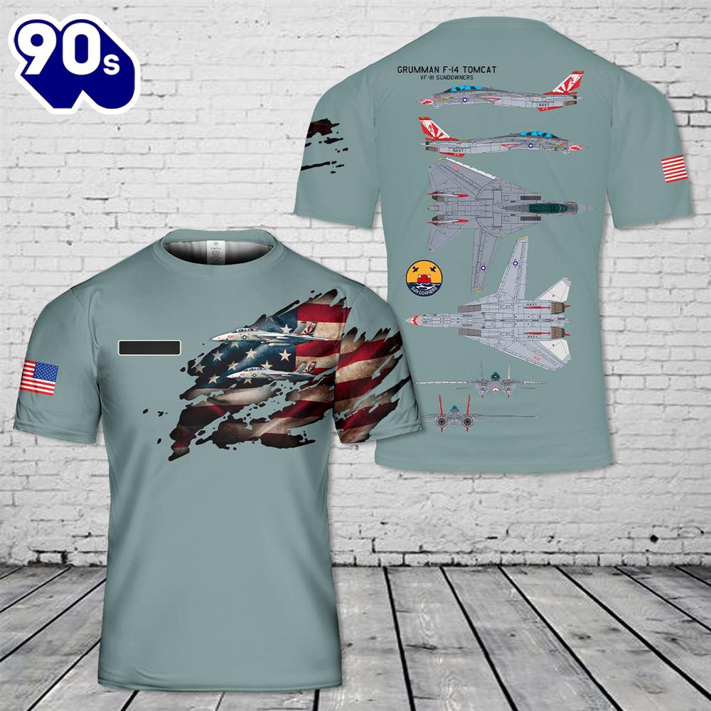 Product details: Custom Name US Navy VF-111 Sundowners Grumman F-14 Tomcat T-Shirt 3D
