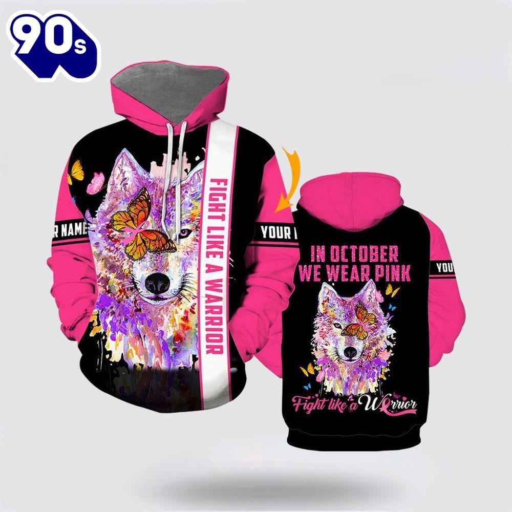 Customized Breast Cancer Watercolor Wolf Butterfly All Over Print Hoodie The 3D Shirt is a fashion statement that goes beyond the ordinary. Using advanced printing technology, it brings designs to life with depth and vividness. Crafted from high-quality materials, it offers comfort and durability. The three-dimensional graphics create a captivating effect that’s perfect for casual wear or making a bold statement. Whether you’re expressing your fandom or showcasing your unique taste, the 3D Shirt is a wearable work of art that sets you apart from the crowd.