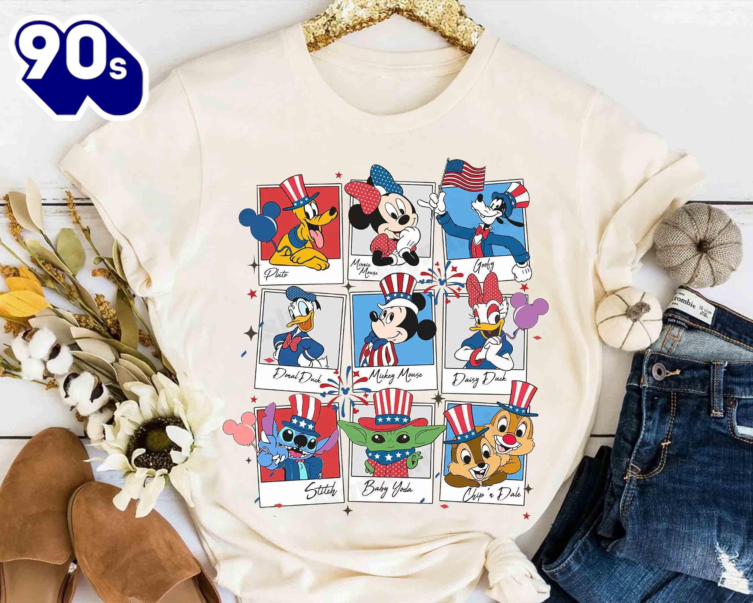 Product details: Cute Mickey and Friends Stitch Baby Yoda Chip ‘n Dale Take Photos 4th Of July Shirt Disney Happy Independence Day WDW Disneyland Family Vacation Gift Gift Xmas