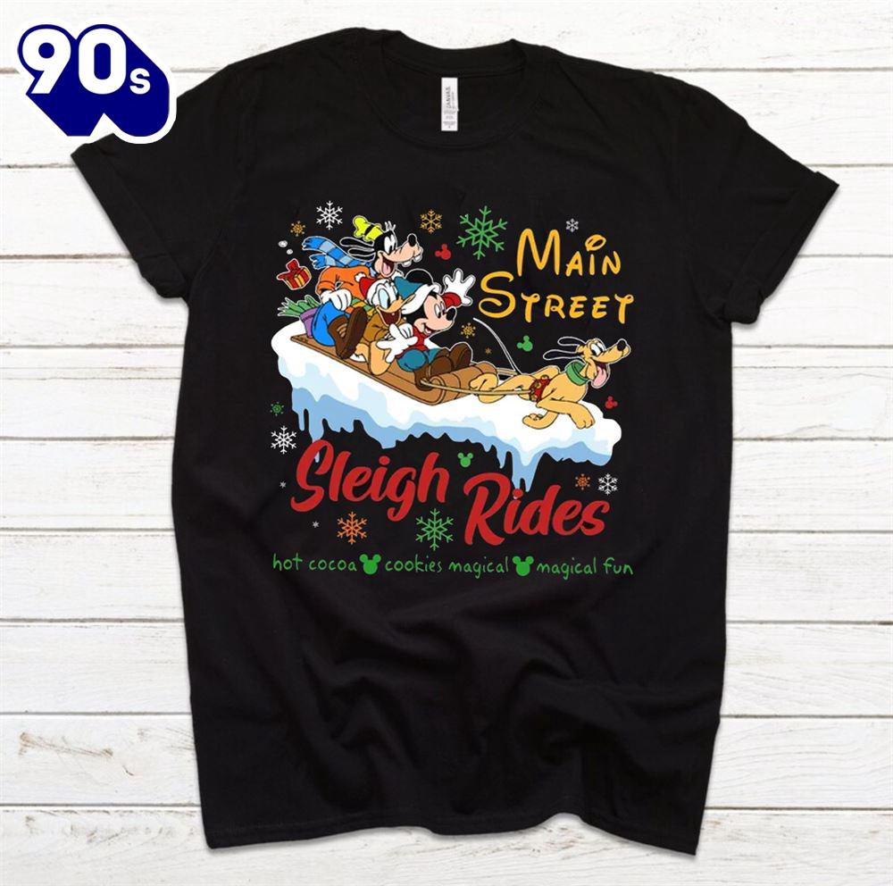 Disney Christmas Shirt, Main Street Sleigh Rides Shirt, Mickey Minnie Holiday Party Shirt, Winter Trip Tee Gift Xmas This versatile T-shirt is perfect for everyone, combining style and comfort. Made from soft, high-quality fabric, it features a classic fit that suits any body type. Ideal for casual wear or layering, this T-shirt comes in a variety of colors to match any wardrobe. Its durable construction ensures long-lasting wear, making it a staple piece for both men and women