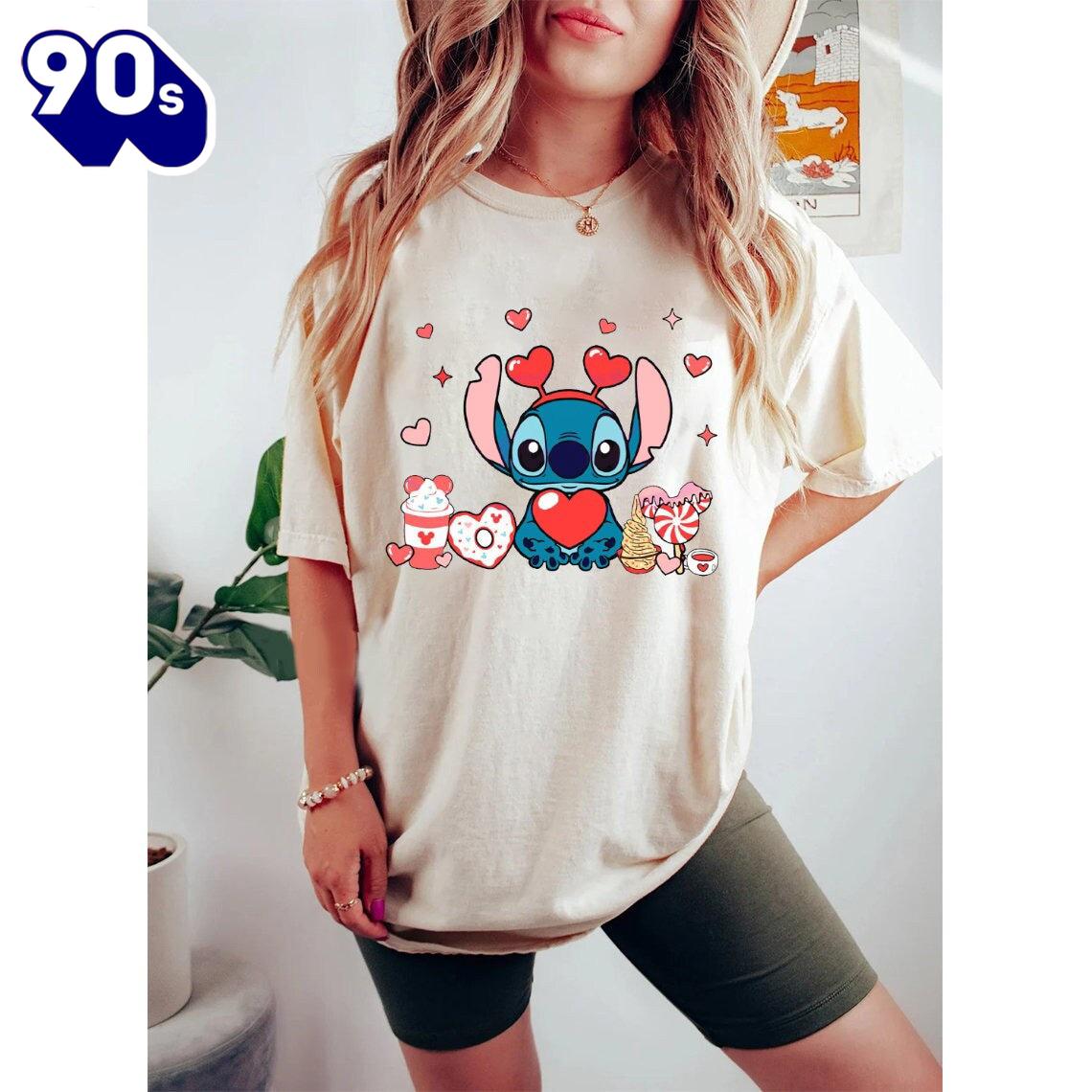 Disney Cute Stitch And Angel Valentines Gift Funny T-Shirt Gift Xmas