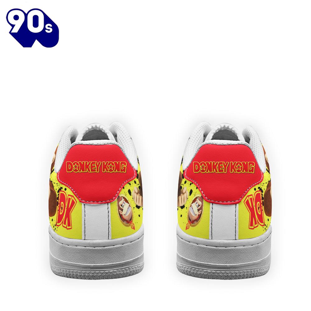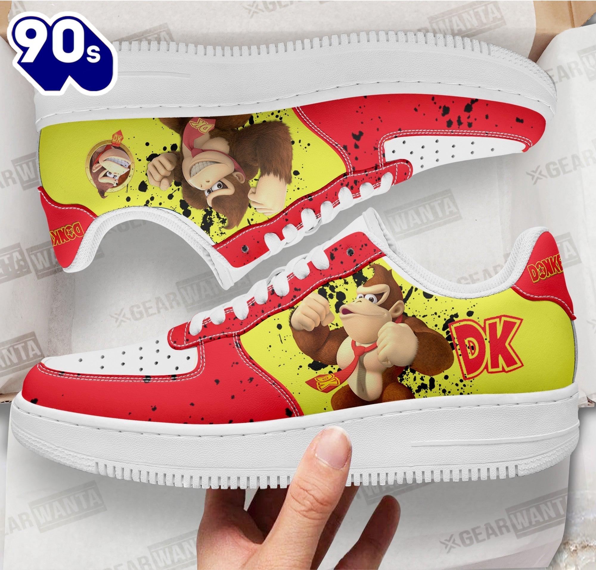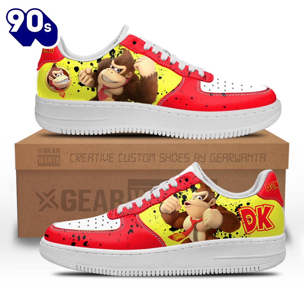 Donkey Kong Air Sneakers Custom For Gamer Shoes Air Force 1 shoes are iconic sneakers that blend basketball heritage with streetwear style. Named after the aircraft that carries the President of the United States, these shoes feature a classic silhouette with a padded collar for comfort and a durable leather upper. The Air cushioning technology in the sole provides exceptional support, making them not only stylish but also practical for everyday wear. Over the years, Air Force 1s have transcended their athletic origins, becoming a cultural symbol in music, fashion, and art, often customized in various colors and designs to reflect individual style. Their timeless appeal and versatility ensure they remain a staple in sneaker culture.