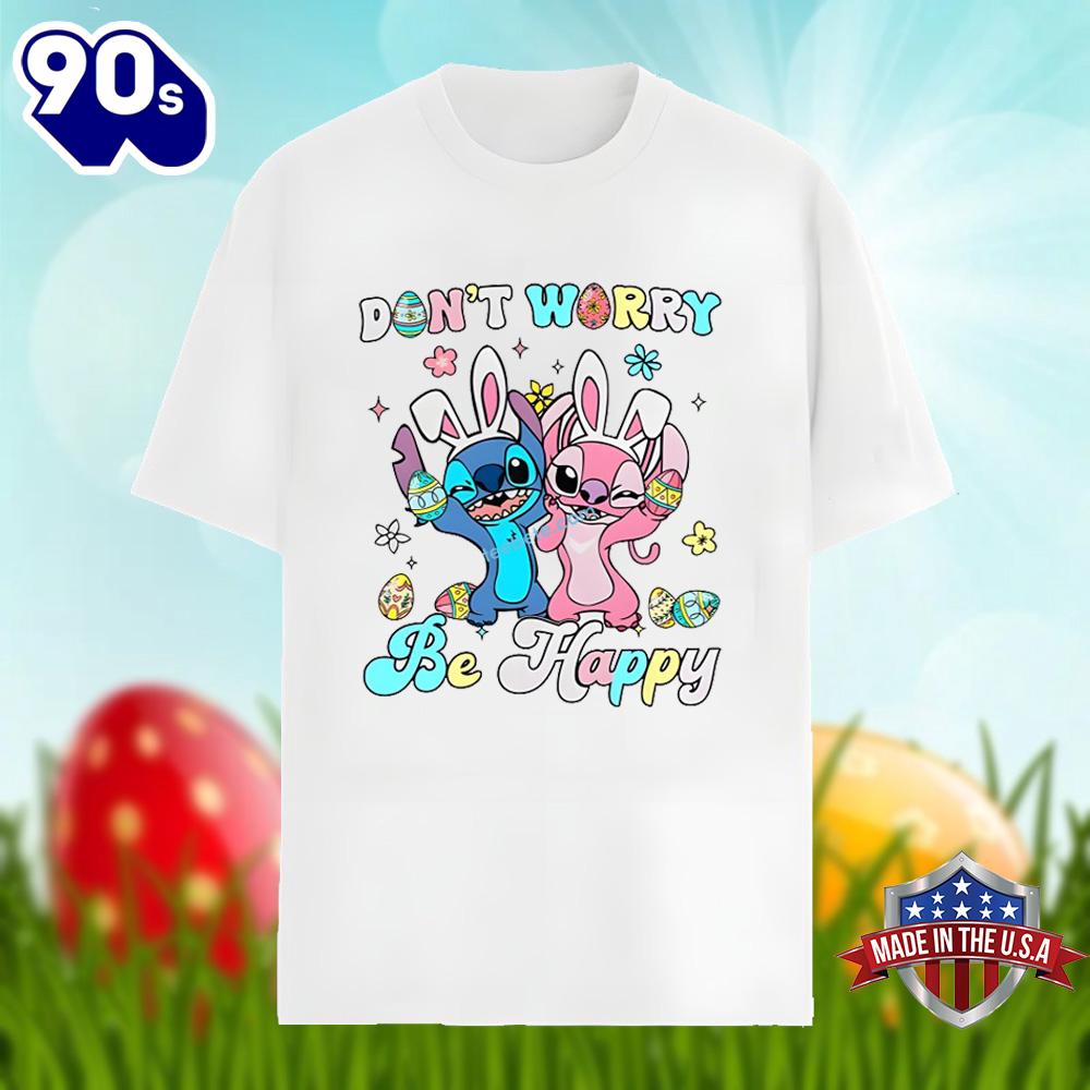 Photos Of Dont Worry Be Happy With Stitch And Angel Easter Graphic Shirt