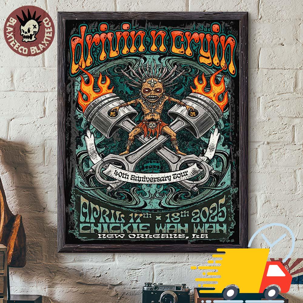 Product details: Drivin N Cryin 40th Anniversary Tour Poster For New Orleans Los Angeles On April 17 And 18 2025 Canvas