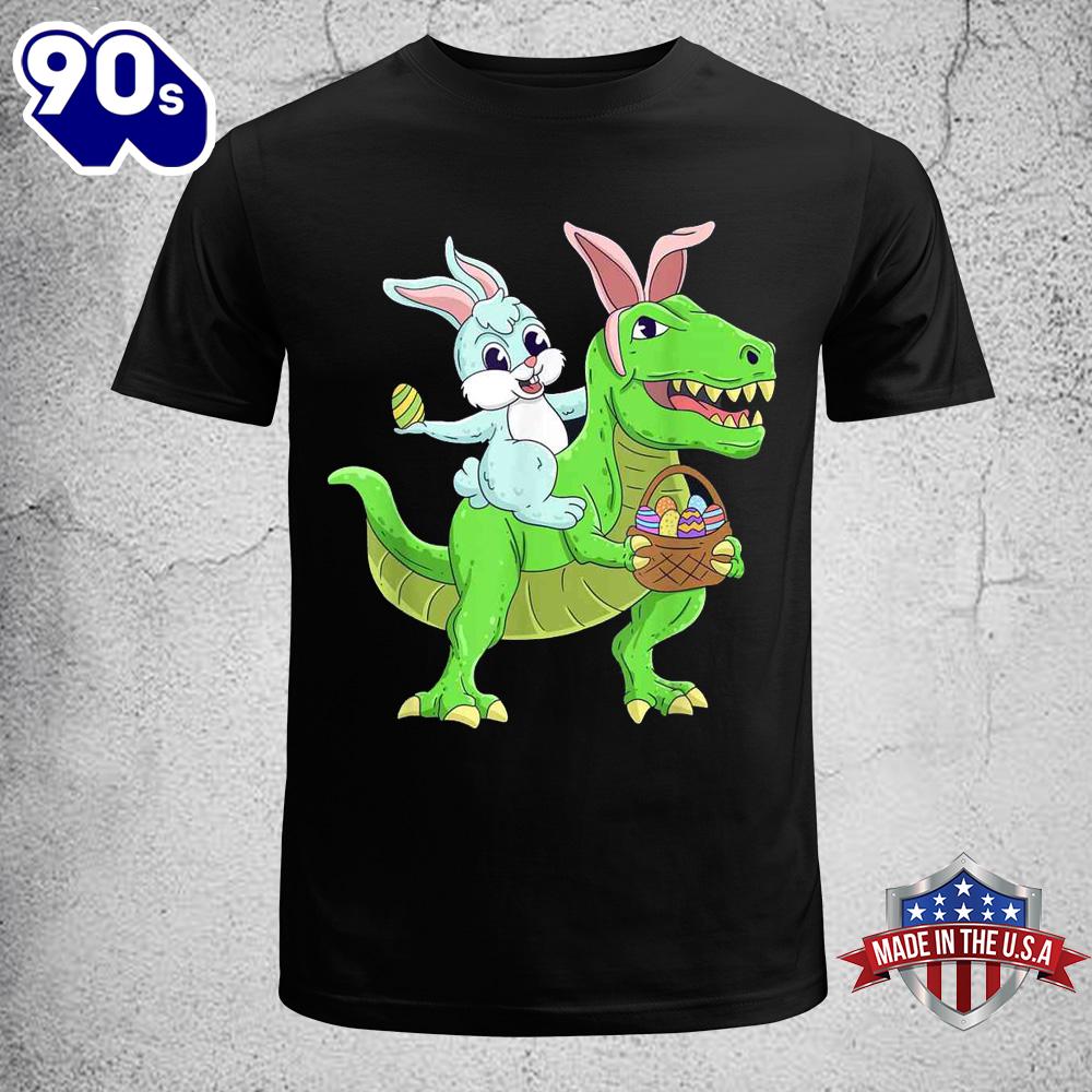 Product details: Easter Bunny Riding Dinosaur T Rex Easter Kids Boys Shirt, Easter Gift Idea