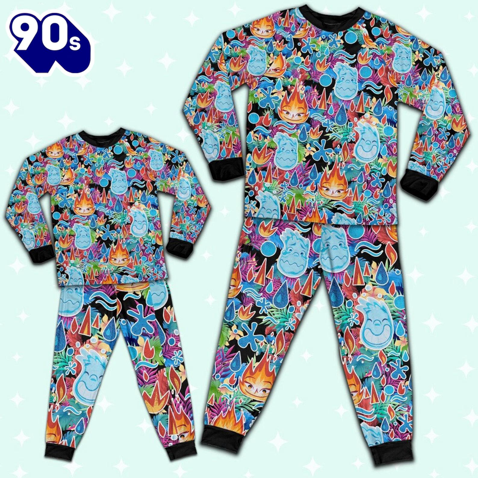 Photos Of Elemental Ember and Wade Summer Tropical Pajamas Set – Movie Cartoon Holiday Pajamas