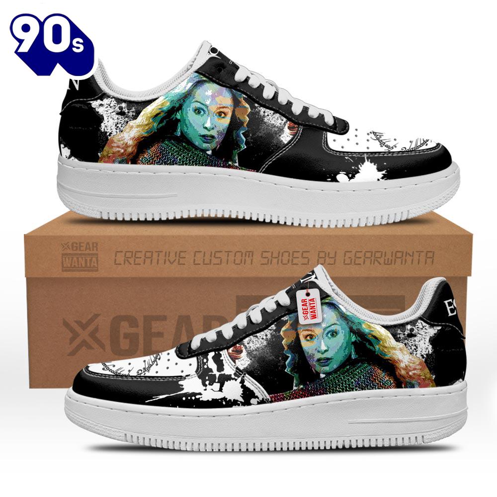 Eowyn The Lord Of The Rings Custom Air Sneakers Air Force 1 shoes are iconic sneakers that blend basketball heritage with streetwear style. Named after the aircraft that carries the President of the United States, these shoes feature a classic silhouette with a padded collar for comfort and a durable leather upper. The Air cushioning technology in the sole provides exceptional support, making them not only stylish but also practical for everyday wear. Over the years, Air Force 1s have transcended their athletic origins, becoming a cultural symbol in music, fashion, and art, often customized in various colors and designs to reflect individual style. Their timeless appeal and versatility ensure they remain a staple in sneaker culture.
