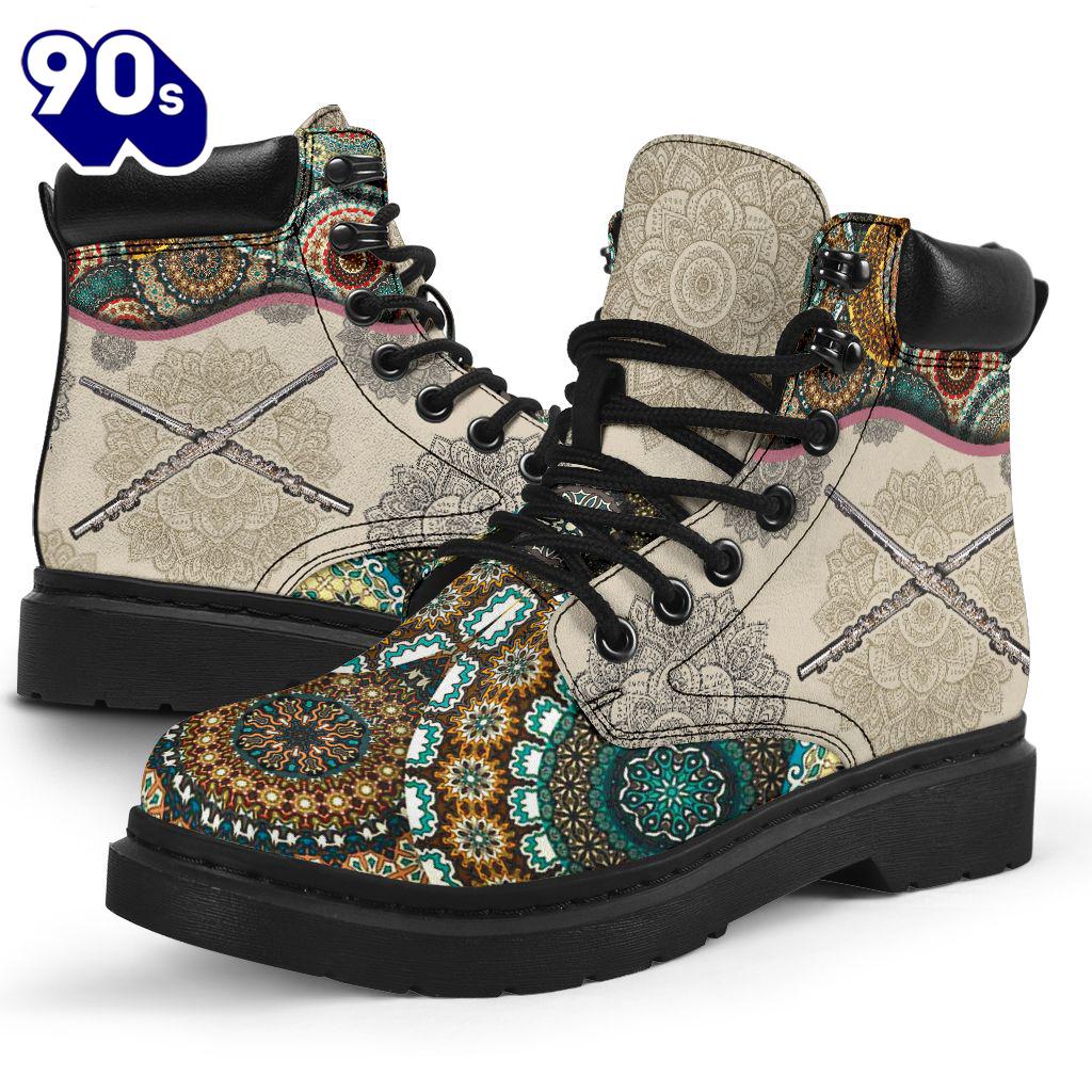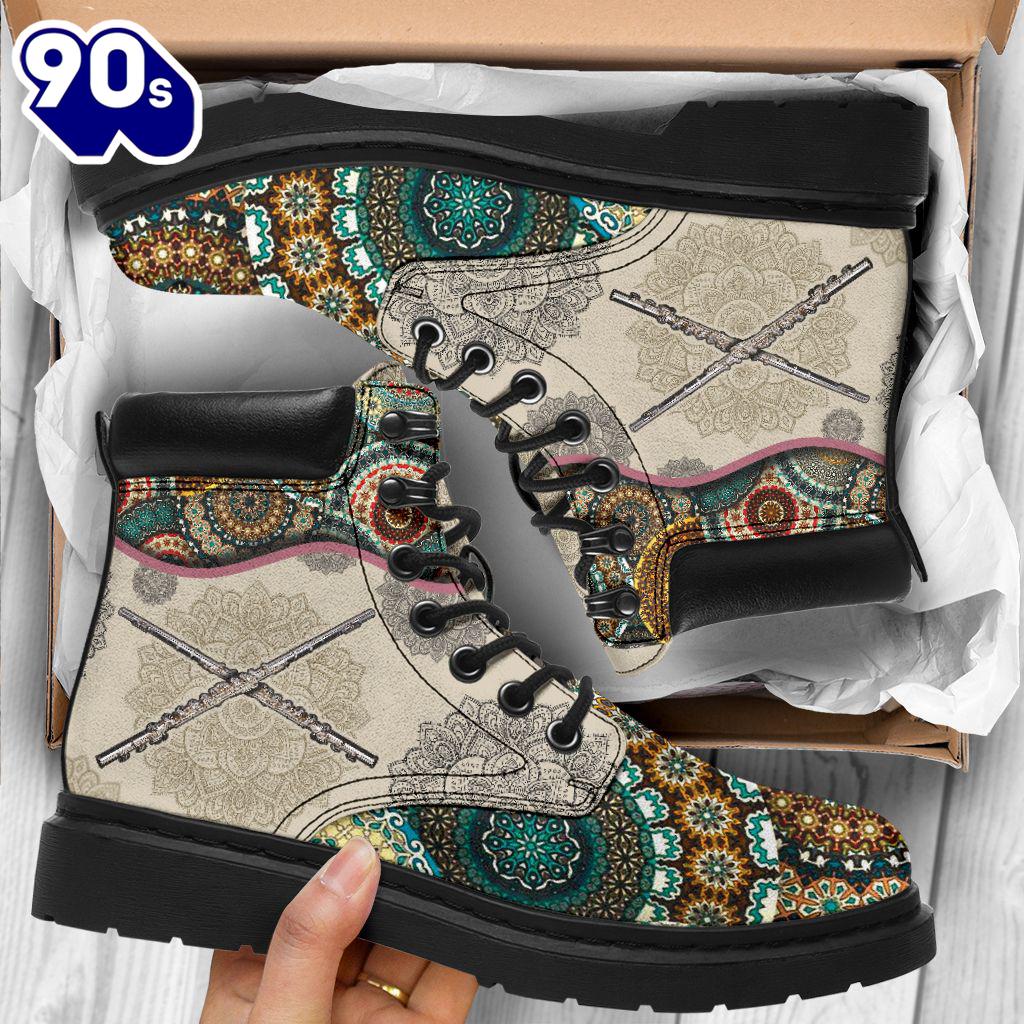 Flute Vintage Mandala Asboot All Season Boots Gift Xmas Boots are versatile footwear designed to provide both style and functionality. Typically made from materials like leather, suede, or synthetic fabrics, they come in various heights, from ankle to knee-high. Boots can be found in numerous styles, including casual, formal, and rugged designs, making them suitable for a wide range of occasions. With features like waterproofing, insulation, and sturdy soles, they offer comfort and protection in various weather conditions. Whether paired with jeans for a casual look or dressed up with a skirt, boots are a timeless addition to any wardrobe, combining practicality with fashion.