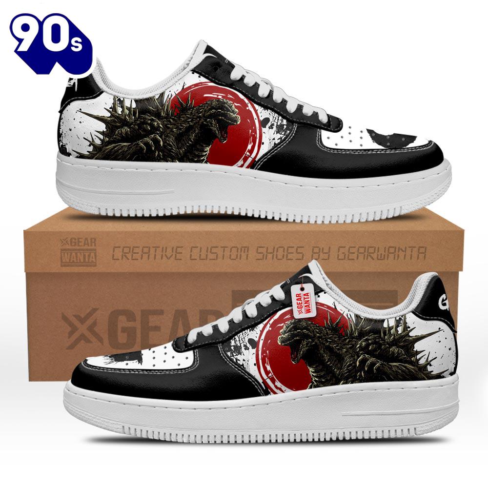God zilla Minus One Custom Air Sneakers Air Force 1 shoes are iconic sneakers that blend basketball heritage with streetwear style. Named after the aircraft that carries the President of the United States, these shoes feature a classic silhouette with a padded collar for comfort and a durable leather upper. The Air cushioning technology in the sole provides exceptional support, making them not only stylish but also practical for everyday wear. Over the years, Air Force 1s have transcended their athletic origins, becoming a cultural symbol in music, fashion, and art, often customized in various colors and designs to reflect individual style. Their timeless appeal and versatility ensure they remain a staple in sneaker culture.