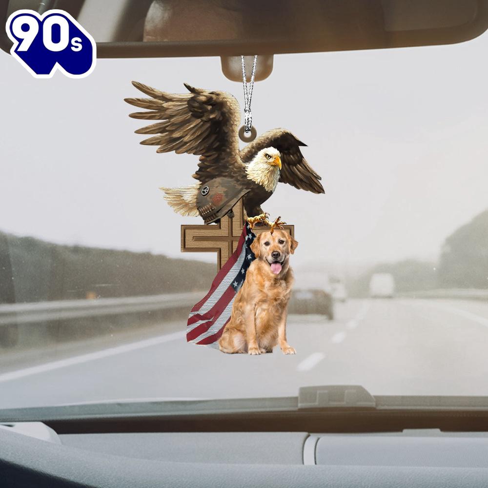 Golden-Retriever And Eagle American Flag Ornament, Gift For Christmas