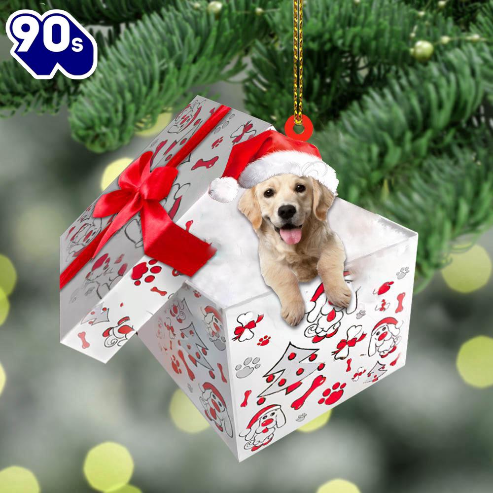 Golden-Retriever In Gift Box Christmas Ornament, Gift For Christmas