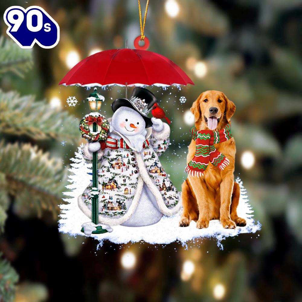 Photos Of Golden Retriever With Snowman Christmas Ornament, Gift For Christmas