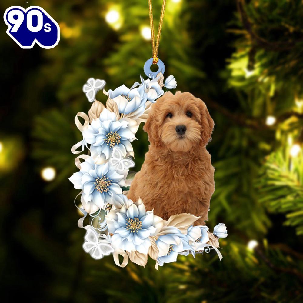 Goldendoodle Flowers Moon Ornament, Gift For Christmas