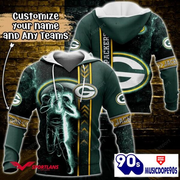 Product details: Green Bay Packers NFL Custom Name 3D Hoodie Teams Shirt For Fans