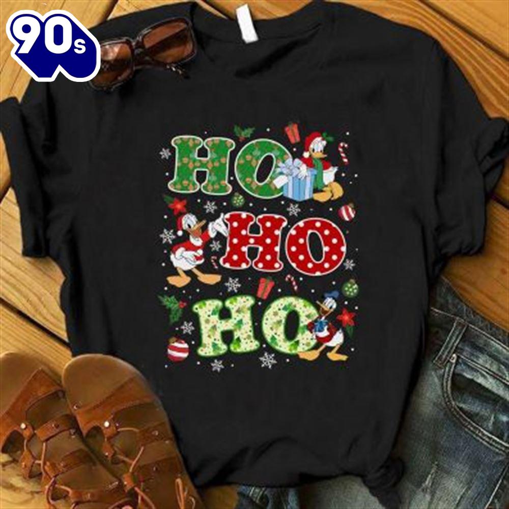 Ho Ho Ho Donald Duck Disney Tee Shirt Gift Xmas This versatile T-shirt is perfect for everyone, combining style and comfort. Made from soft, high-quality fabric, it features a classic fit that suits any body type. Ideal for casual wear or layering, this T-shirt comes in a variety of colors to match any wardrobe. Its durable construction ensures long-lasting wear, making it a staple piece for both men and women