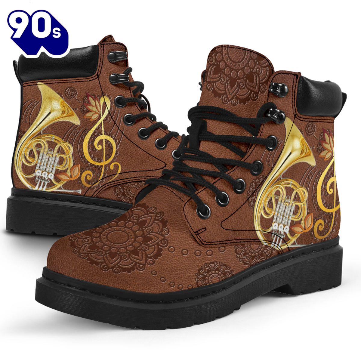 Horn Mandala Leather Asboots All Season Boots Gift Xmas Boots are versatile footwear designed to provide both style and functionality. Typically made from materials like leather, suede, or synthetic fabrics, they come in various heights, from ankle to knee-high. Boots can be found in numerous styles, including casual, formal, and rugged designs, making them suitable for a wide range of occasions. With features like waterproofing, insulation, and sturdy soles, they offer comfort and protection in various weather conditions. Whether paired with jeans for a casual look or dressed up with a skirt, boots are a timeless addition to any wardrobe, combining practicality with fashion.