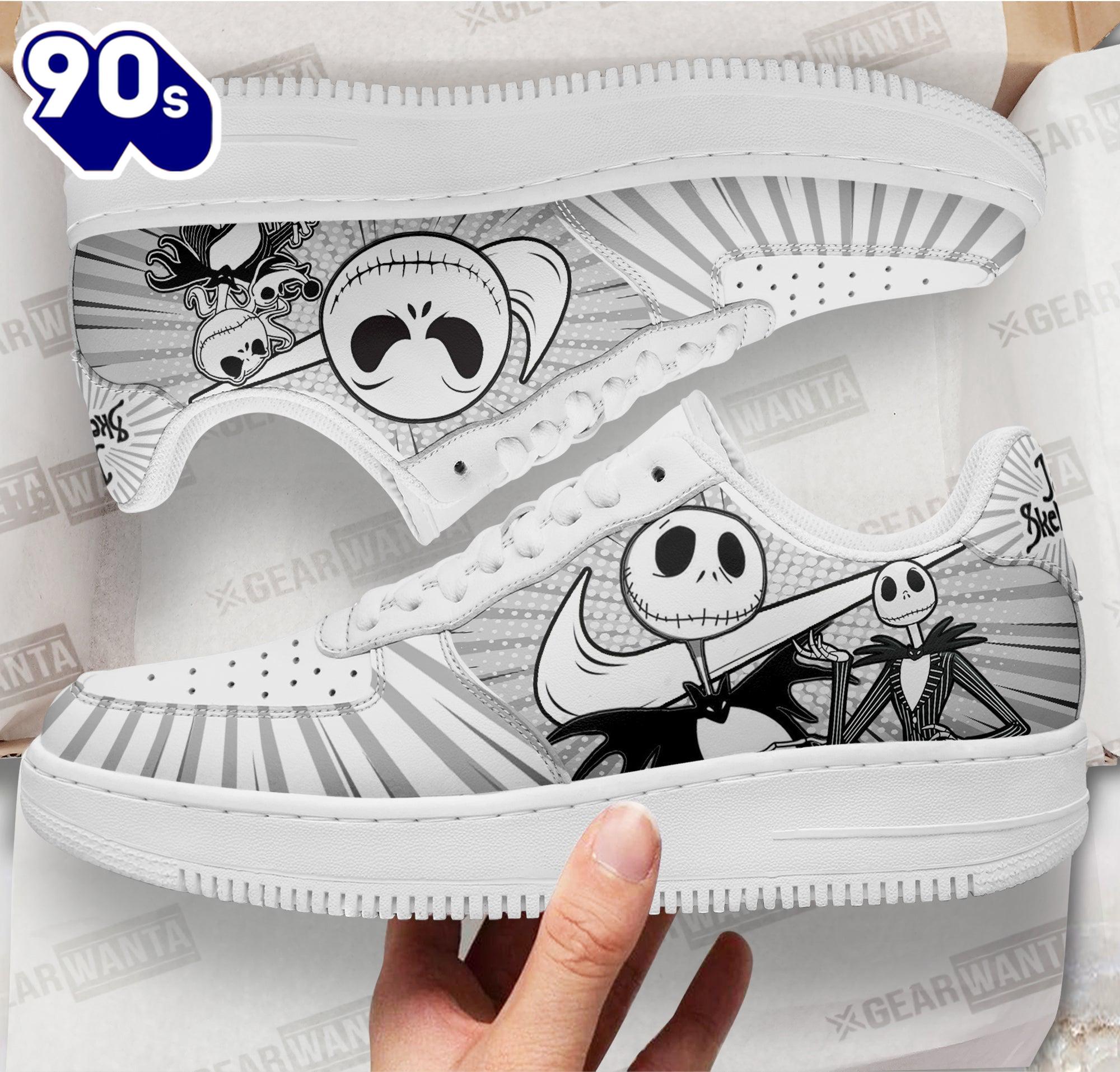 Jack Skellington Air Sneakers Custom Shoes Air Force 1 shoes are iconic sneakers that blend basketball heritage with streetwear style. Named after the aircraft that carries the President of the United States, these shoes feature a classic silhouette with a padded collar for comfort and a durable leather upper. The Air cushioning technology in the sole provides exceptional support, making them not only stylish but also practical for everyday wear. Over the years, Air Force 1s have transcended their athletic origins, becoming a cultural symbol in music, fashion, and art, often customized in various colors and designs to reflect individual style. Their timeless appeal and versatility ensure they remain a staple in sneaker culture.