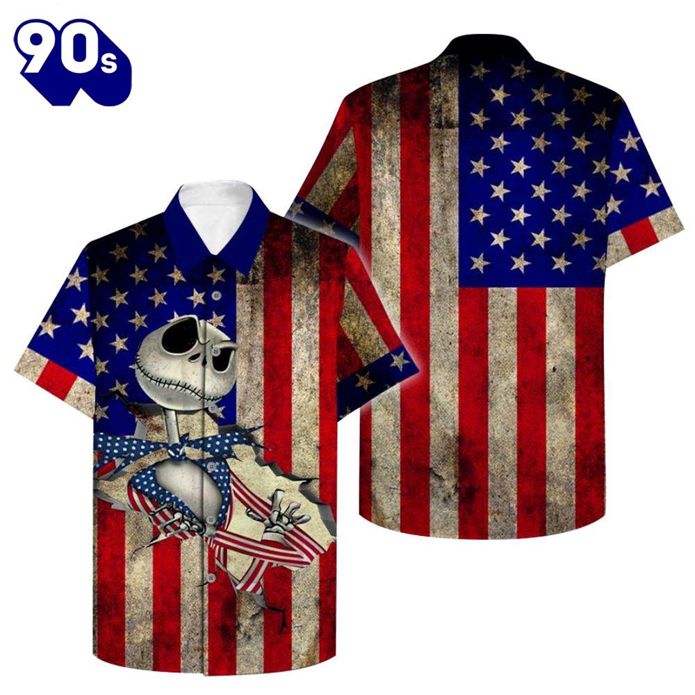 Product details: Jack Skellington American Flag Hawaiian Shirt Gift Xmas